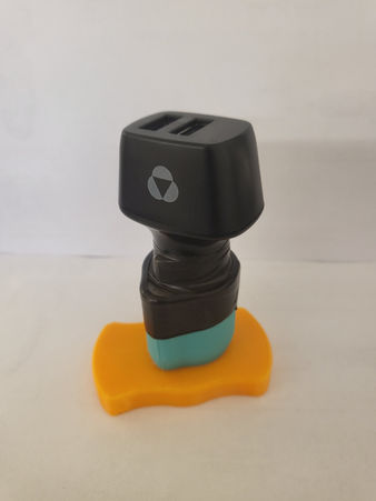 I then engineered a cheap and easy solution by designing a 3D printed model adapter using basic materials that can be found in stores. With a rivet, copper wire, and a common phone charger, anyone can assemble a charger in 5 minutes.